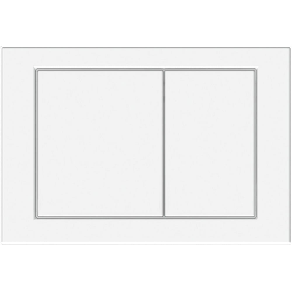 Jednokolorowa płytka przycisków do WC wykonana z tworzywa w kolorze białym z połyskiem. Estetyczny wygląd i tradycyjna stylistyka. Dwa przyciski spłukiwania.
