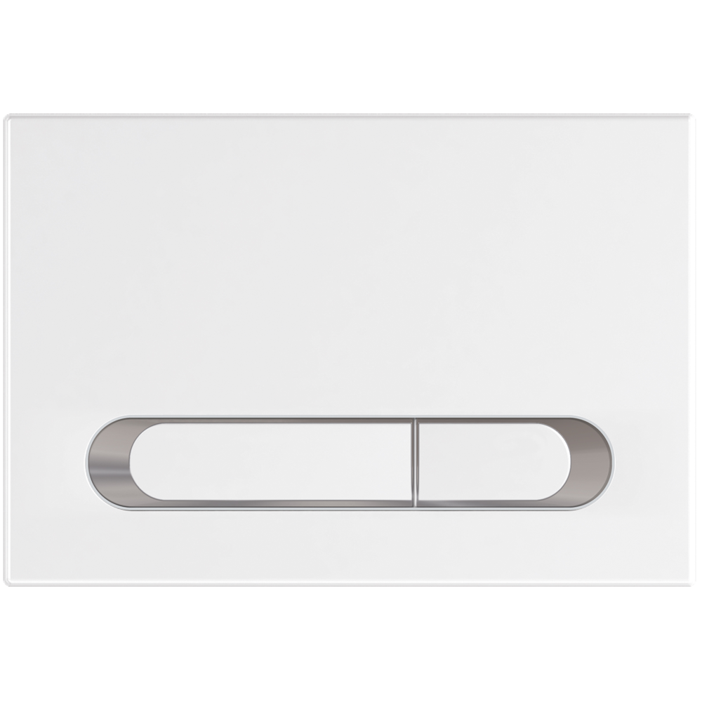 Jednokolorowa płytka przycisków do WC wykonana z tworzywa w kolorze białym z połyskiem z chromowanymi obwódkami przycisków. Estetyczny wygląd i oryginalna stylistyka. Dwa przyciski spłukiwania. Płytka pasuje do stelaży podtynkowych KK-POL Premium, Standard, Economic oraz KK-POL Professional wolnostojący, do zabudowy niskiej i ciężkiej.