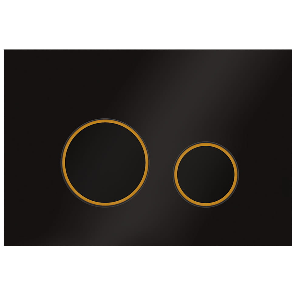 Czarna płytka przycisków do WC wykonana z tworzywa, z obwódką przycisków w kolorze złotym matowym. Płytka pasuje do stelaży podtynkowych KK-POL Premium, Standard, Economic oraz KK-POL Professional wolnostojący, do zabudowy niskiej i ciężkiej.