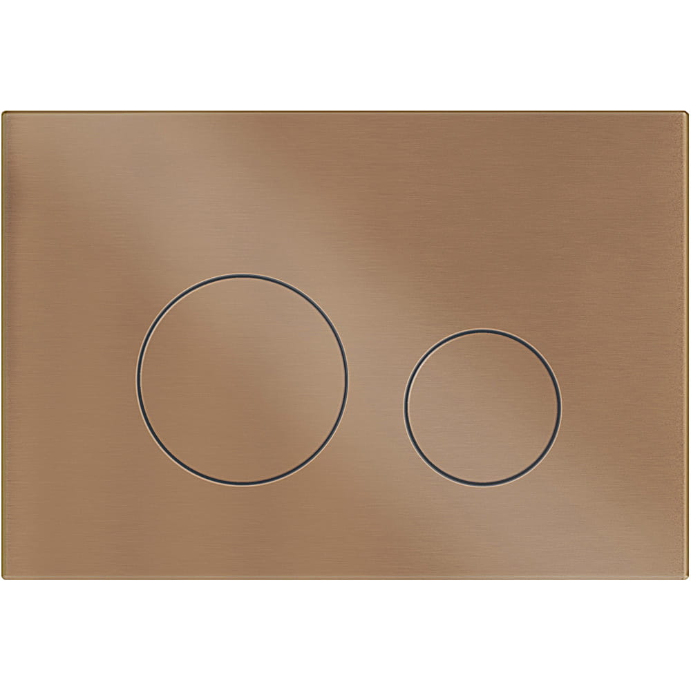Elegancka, jednokolorowa płytka przycisków do WC wykonana z tworzywa o chromowanej powierzchni w kolorze miedzi ze szczotkowaną fakturą.